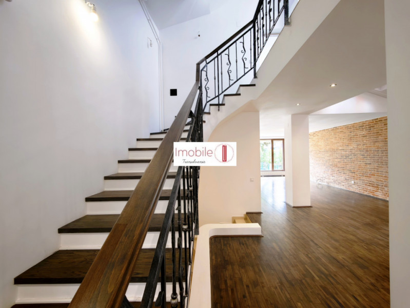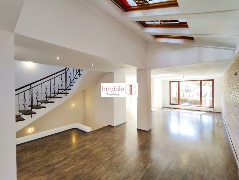 ~Parter: Zonă de zi spectaculoasă (50 mp) cu acces în grădină, bucătărie închisă, cămară și baie de serviciu.