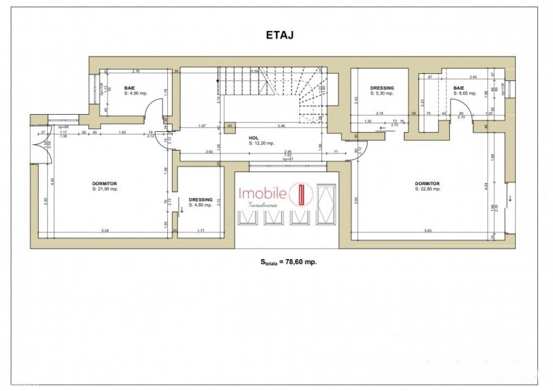 ~Etaj: 2 dormitoare spațioase, fiecare dotat cu dressing propriu, baie și balcon.