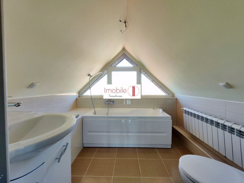 ~La etaj avem doua bai, 3 camere, iar mansarada are amenajat spatiul, inclusiv o baie. La toate acestea se adauga un apartament independent de 2 camere cu bucatarie si baie in suparafata de 55 mp amenajat pe sub una din terase. Un view deosebit se remarca la mansarda catre cele 4 puncte cardinale.